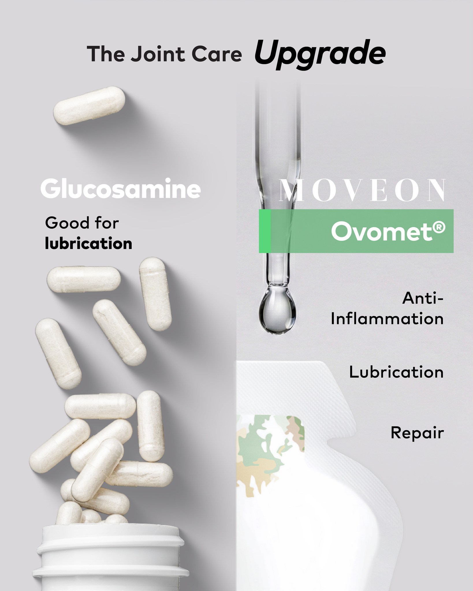 Ovomet® naturally provides the mix of Collagen and HA found in joints.