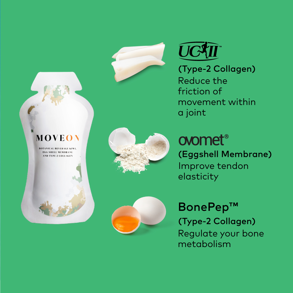 Moveon represents the evolution of joint care. By combining the world’s most potent patented ingredients into a highly absorbable liquid, promoting natural repair and long-term mobility.
